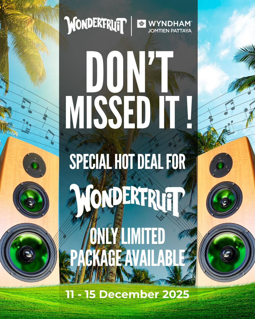 Don’t missed it! Experience Wonderfruit with comfort and style — Special Hot Deal exclusively for Wonderfruit attendees. Limited packages available, so book your stay now at Wyndham Jomtien Pattaya